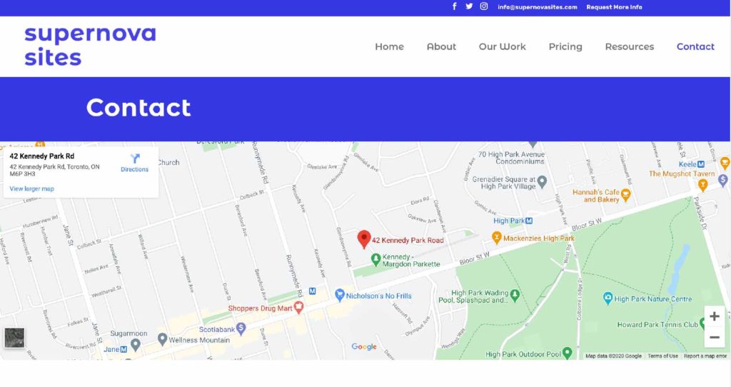 Don’t just include an email or phone number on your contact page, add the map directly.