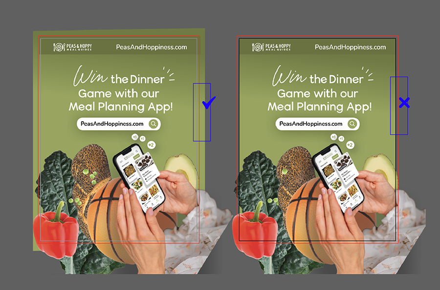 A frequent error in print design is forgetting to include a bleed in your design. Bleed refers to the extra space around the edges of your artwork that ensures no unwanted white borders appear when the design is trimmed after printing.