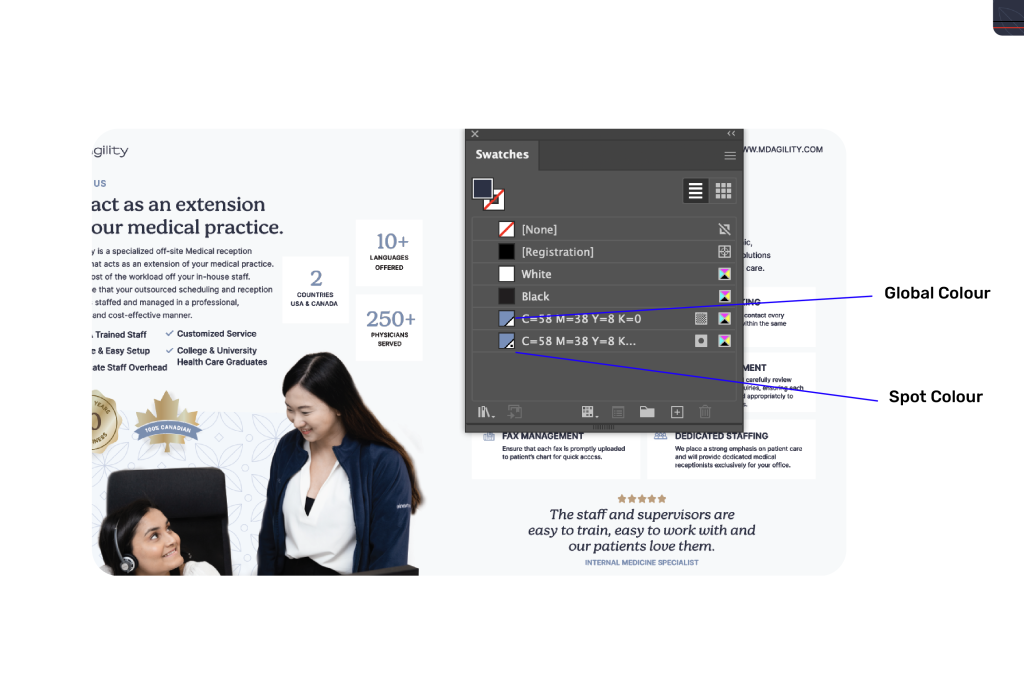 Other common print mistakes is not understanding the difference between Spot Colours and Global Colours when preparing a design for print. This can result in unexpected colour variations. Junior designers might mistakingly use one instead of the other and vice versa.