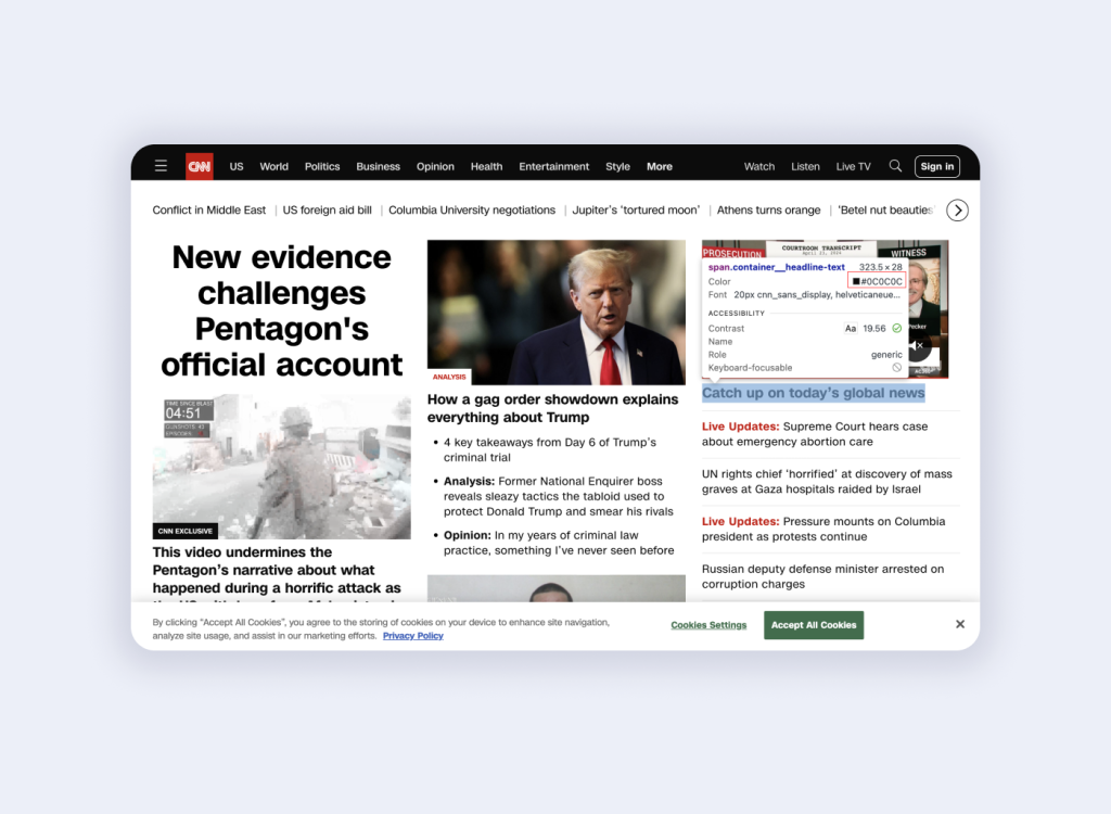 For these same reason in order to make reading online easier on the eyes, you’ll often find news sites like New York Times (#121212), Forbes (#333333), and CNN (#0c0c0c) avoid the use of #00000 and use different blacks as shown below.