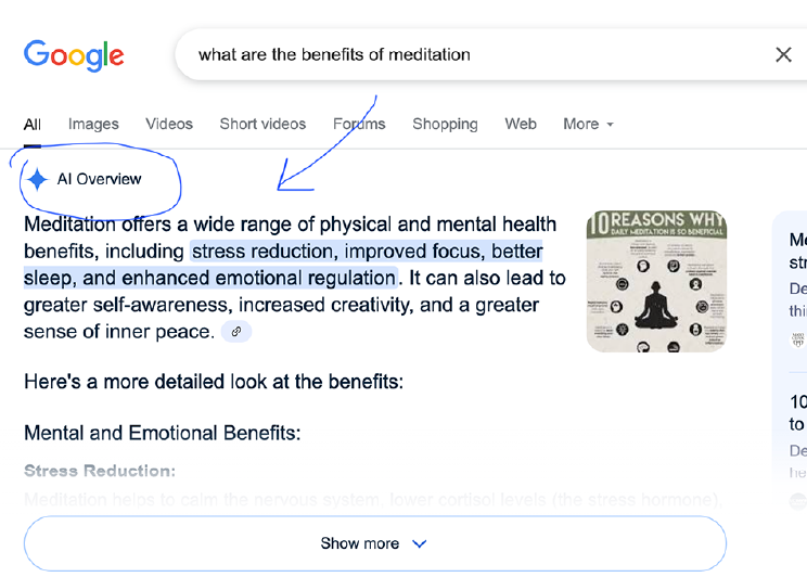 Google’s AI Overview and tools like ChatGPT are revolutionizing SEO, making traditional tactics less effective. This generative AI feature, displayed at the top of Google search results, provides instant answers, often eliminating the need to click through to websites. For health and wellness professionals-therapists, nutritionists, or yoga coaches in cities like Toronto, Mississauga, Calgary, New York or LA -this drop in click-through rates hurts businesses reliant on website traffic for bookings. Informational queries like “What are the benefits of mindfulness meditation?” or “How does cognitive behavioural therapy work?” are answered directly by AI Overview, reducing blog visits. With search engines potentially becoming less central as AI dominates, health and wellness entrepreneurs and SEO specialists must adapt. Here are six strategies to ensure your website thrives.