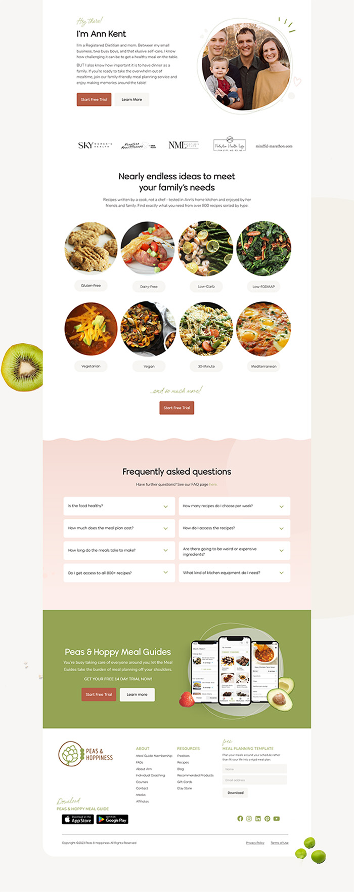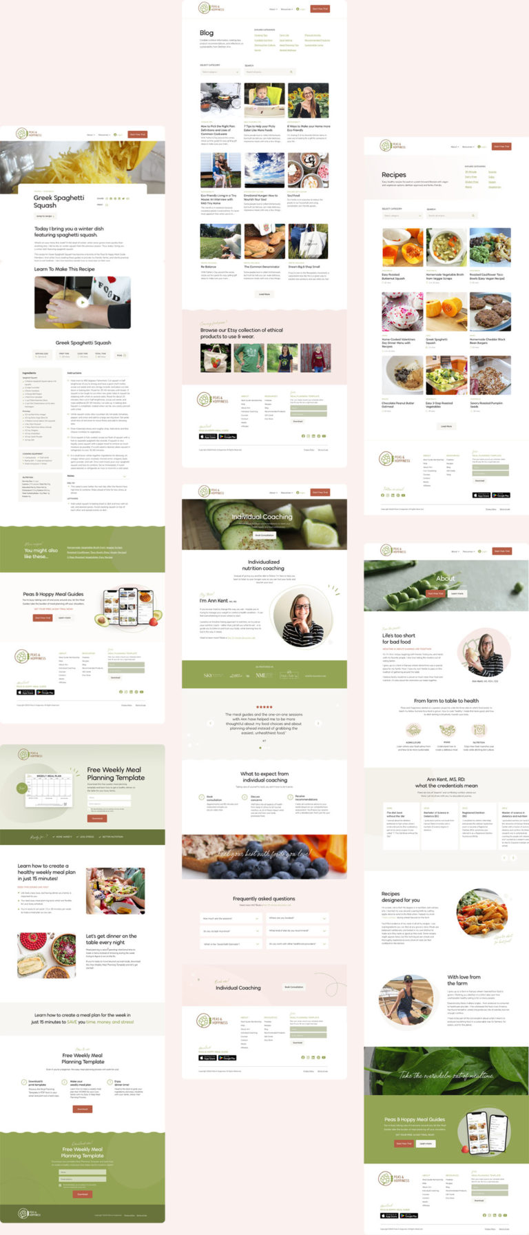 - Homepage, About, Recipes, Blog, Consultation and Landing Page