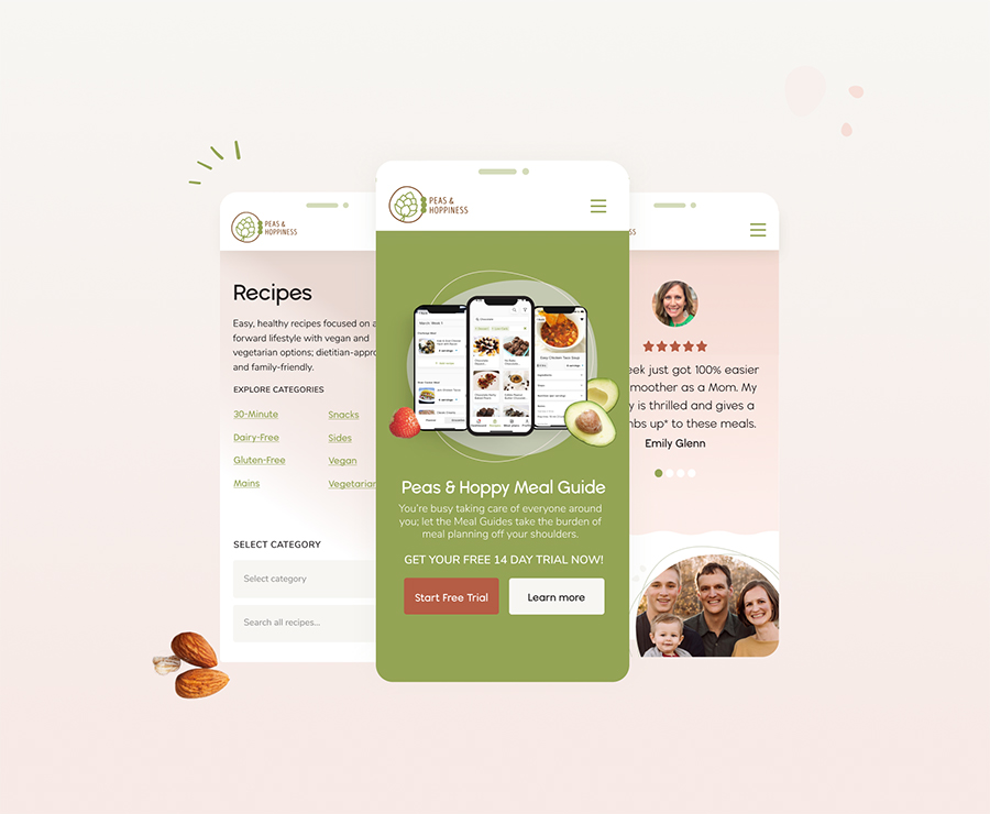 Peas & Hoppiness was operating on many disconnected platforms and wanted to streamline their process, improve their webpage design (particularly for recipes), as well as have a brand identity they could replicate, appear professional, fun and modern.