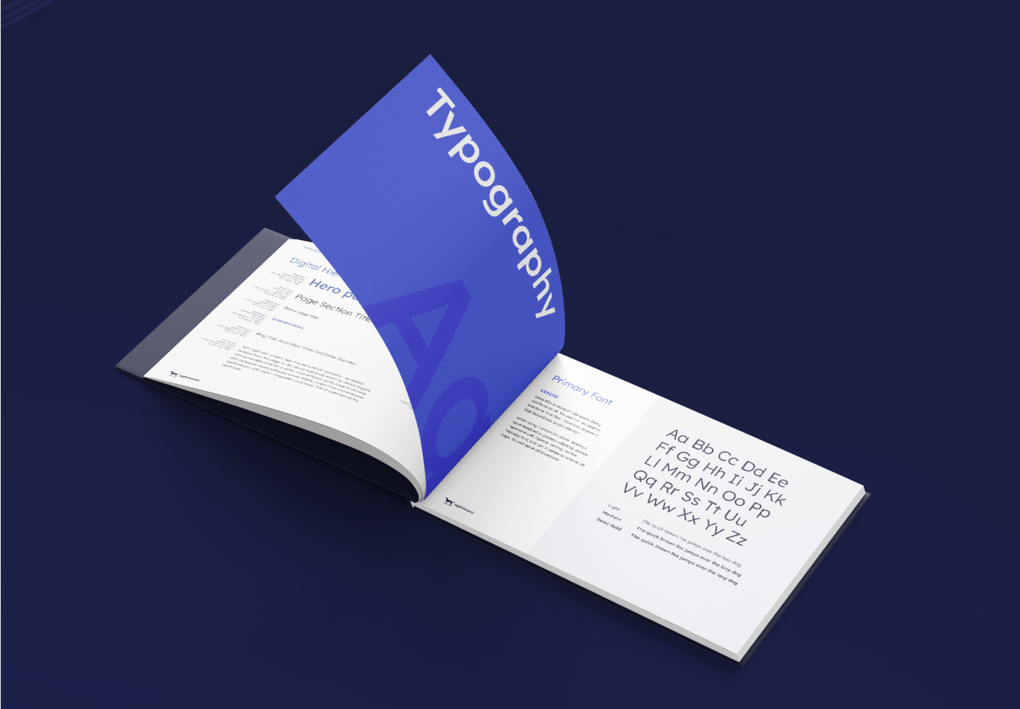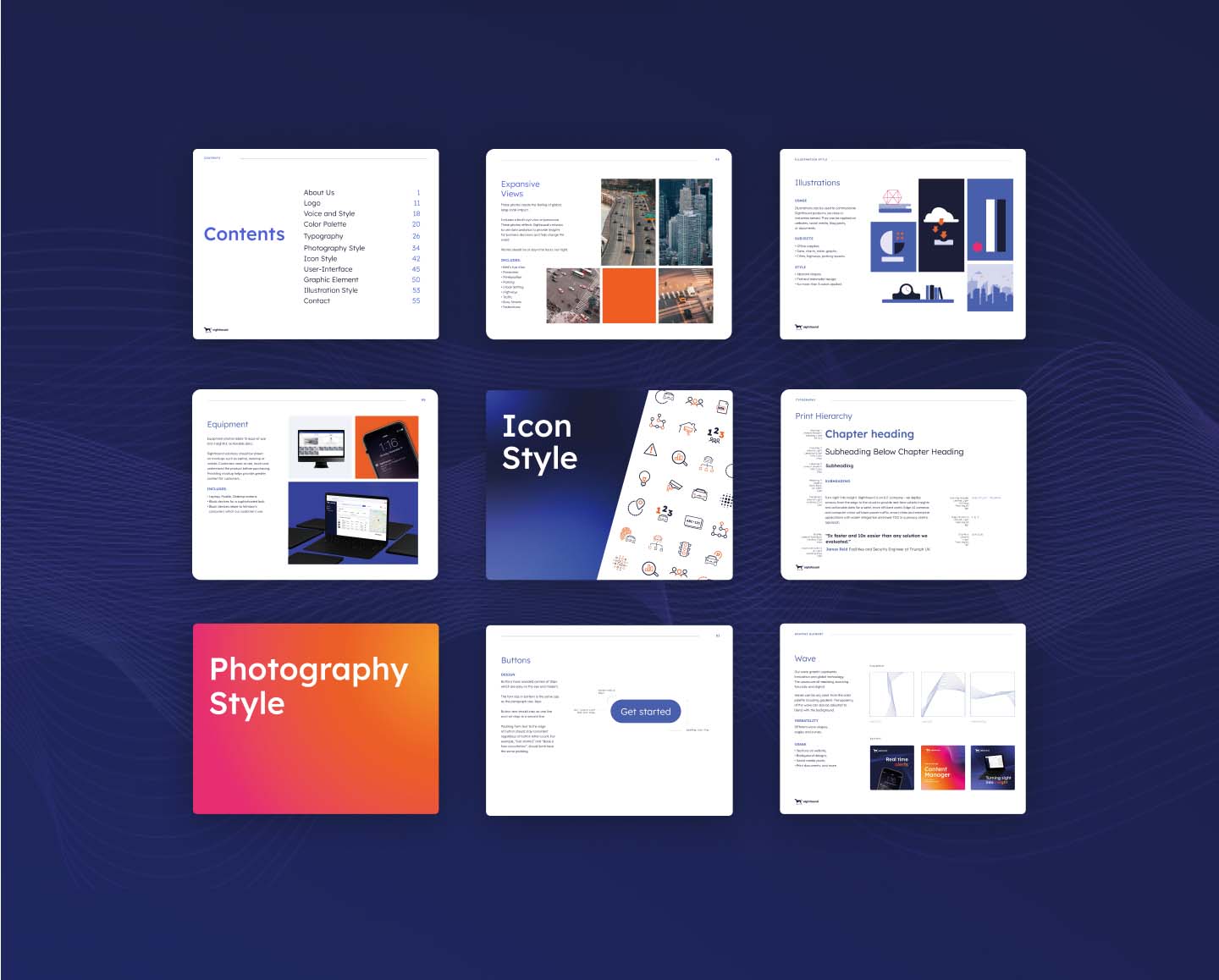 The brand guidelines includes all aspects of their visual identity including logo usage, colors, typography, visual style and templates.